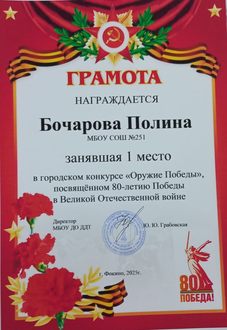 Фамилия, имя, отчество руководителя: Грабовская Юлия Юрьевна