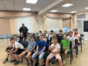 Наступило лето, а вместе с ним начал работу летний оздоровительный лагерь с дневным пребыванием детей «Радуга талантов». В нашем лагере на базе Дома детского творчества отдыхает 100 человек. Отряд юнармейцев занимается по программе «Растим патриотов». В отряде 25 человек, руководит отрядом педагог-организатор Шабрина М.В. Возраст юнармейцев от 10 лет и старше. Ребята занимаются начальной военной подготовкой: сборкой и разборкой автомата, физической культурой, разбирают ситуации, связанные с безопасностью во время терактов, химической, радиологической атаки. Юнармейцев также ждут встречи с шефами военнослужащими, поездки в войсковые части, походы в кино, экскурсии по местам боевой славы.