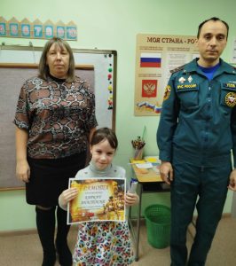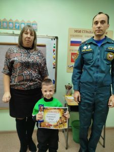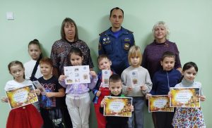 Дятлова Анастасия Николаевна, ведущий специалист по пожарной безопасности МКУ ГОЧС и ПБ городского округа ЗАТО г. Фокино, вручила ребятам Грамоты и сладкие подарки. Усов Алексей, инспектор ООиО ФГПН ОФГПН ФГКУ СУ ФПС N 25 МЧС России, напомнил ребятам , как нужно вести себя при пожаре. Ребята ответили на вопросы инспектора и получили на память памятки.