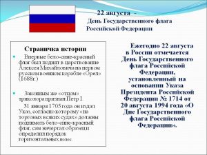 ДЕНЬ ГОСУДАРСТВЕННОГО ФЛАГА РОССИИ — 22 АВГУСТА