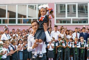 Во многих учебных заведениях в международный День знаний сохраняют верность традиции – один из выдающихся старшеклассников школы несёт на плече первоклассницу, в руках у которой звонкий колокольчик. После линейки первоклассники идут в школу на первый ознакомительный урок, а ученики всех остальных классов – на уроки-беседы о новом этапе школьной жизни, о важном, о ценностях.