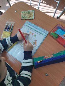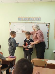 Вспомнили, что такое символы и узнали что такое таблица. А далее они работали с геометрическими фигурами.
