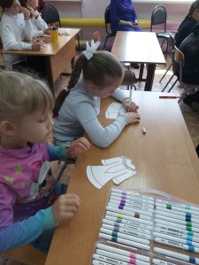 А волшебство было вот в чём: с помощью фломастеров обычные картонные силуэты платьев и юрты превратились в нарядные изделия! Каждая работа стала уникальной.