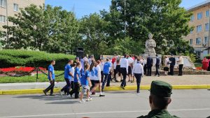 3 сентября волонтеры и молодогвардейцы приняли участие в митинге, посвященном окончанию Второй мировой войны на Дальнем Востоке, который состоялся около памятника Марии Цукановой (г.Фокино, ул. Цукановой). Мария Цуканова красноармеец, Герой Советского Союза, санинструктор 355-го отдельного батальона морской пехоты Тихоокеанского флота. Во время Советско-японской войны 14 августа 1945 года Мария Цуканова в составе 355-го батальона морской пехоты участвовала в высадке десанта в корейский порт Сэйсин (ныне Чхонджин). Во время боя оказывала медицинскую помощь раненым, вынесла с поля боя 52 раненых десантника. Была дважды ранена, но отказалась покидать поле боя. Это событие — важная веха в понимании исторической значимости и уроков войны.