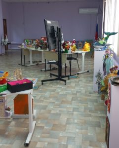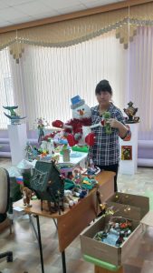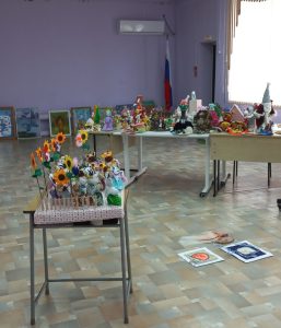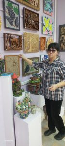 Декоративное искусство — это материалы, фактуры и ручная работа. Оформитель выставки Анна Николаевна Федотова, художник Дома детского творчества, тщательно отбирает экспонаты, объединяя их общим сюжетом или стилистикой, чтобы выставка читалась как единое повествование, а не набор случайных вещей.