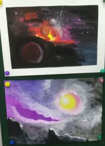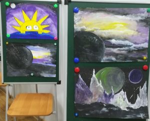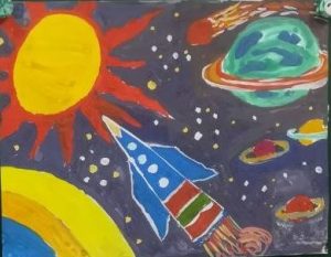 К Дню космонавтики, ребята из кружка «Город мастеров» Дома детского творчества предоставили свои работы. Руководитель кружка Федотова Анна Николаевна предварительно на занятиях знакомила ребят со звездной системой, планетами. Огромную фантазию проявили ребята при выполнении своих рисунков: неопознанные объекты, существа, населяющие космос, заполняли детские полотна. Фантазия у детей – безгранична, это и есть космос!