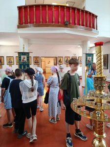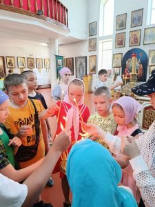 Готовясь к празднованию Дня семьи, любви и верности, 2 отряд лагеря «Радуга» Дома детского творчества с педагогом дополнительного образования Анной Николаевной Федотовой посетил с экскурсией православный храм Андрея Первозванного. Церковнослужители рассказали ребятам об основах православия, провели по храму, дети по желанию смогли поставить свечи у икон. Православие основано на любви к Богу, к ближнему. В обществе ценятся такие понятия, как семья, любовь и верность. В российской культуре есть праздник, который отсылает нас к основам православия — День семьи. Основоположниками праздника стали православные святые Петр и Феврония. Они своим примером показали нам, как надо любить, уважать и заботиться друг о друге.  В честь этих православных святых и отмечается 8 июля этот праздник  и, хотя празднуется в современной истории России недавно, но уже прижился и полюбился людьми. Символом праздника считается цветок ромашка. На мастер-классе, который подготовила и провела педагог дополнительного образования Наталья Пантелеевна Каримова, дети изготовили брошь к форме ромашки.
