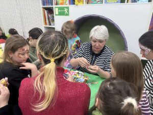 Наталья Николаевна Коровина, педагог дополнительного образования, приняла участие в библиосумерках в городской детской библиотеке. Она дала мастер-класс по традиционной народной кукле.