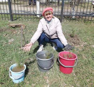На территории ДДТ были высажены саженцы сосны. Зеленые деревца создадут в будущем красивый, уютный уголок!