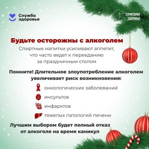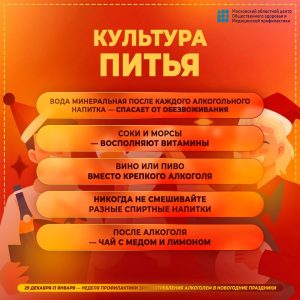 С 23 декабря 2024 года по 5 января 2025 года в России проводилась Неделя профилактики злоупотребления алкоголем в новогодние праздники. Министерство здравоохранения Российской Федерации объявило эту неделю, чтобы обратить особое внимание на проблему рискованного потребления алкоголя в праздничные дни. okvd.brkmed.rusopd.sakhalin.gov.ruspidrm.gosuslugi.ru