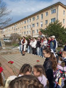 После Поверки дети, педагоги дополнительного образования и родители посетили улицу Героя Советского Союза Марии Цукановой, к памятнику которой возложили цветы и почтили ее память минутой молчания.