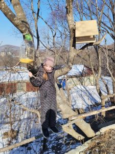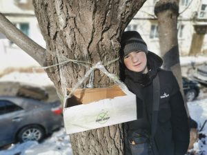 Краеведческий кружок «Аскольд» вновь пришёл на помощь пернатыми. Ребята сделали из пластиковых бутылок и картонных коробок почти два десятка кормушек и развесили их рядом со своими домами, чтобы было удобнее наблюдать за крылатыми и во время подсыпать им крупу.
