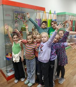 Также очень увлекательно прошла экскурсия по актовому залу Дома детского творчества и фойе, в котором расположены предметы быта и одежды разных национальностей, населяющих нашу великую страну.