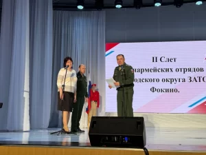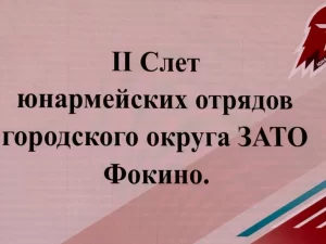 В ЗАТО Фокино прошёл 2 Слет юнармейских отрядов городского округа. Слет — это подведение итогов года. На Слете присутствовали Советник Главы городского округа Полищук Анжела Владимировна, председатель ветеранской организации «Боевое братство» Карташов Константин Михайлович, военнослужащие войсковой части 29982.