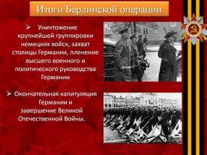 Заключительным сражением в Великой Отечественной войне стала битва за Берлин, или Берлинская стратегическая наступательная операция, которая проводилась с 16 апреля по 8 мая 1945 г.